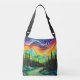 This crossbody bag features an abstract illustration of magical northern lights phenomenon. This handbag would make a delightful gift idea for friends and family.