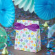 Underwater pattern favour boxes with elements of a group of fish and air bubbles.