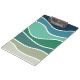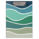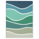 Abstract retro style illustration of colourful (blue, navy blue, grey, green, turquoise) ocean waves decoration on white background