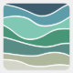 Abstract retro style illustration of colourful (blue, navy blue, grey, green, turquoise) ocean waves decoration on white background