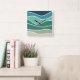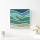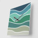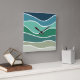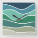 Abstract retro style illustration of colourful (blue, navy blue, grey, green, turquoise) ocean waves decoration on white background