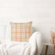 This throw pillow features a colourful plaid design in orange, blue, and brown on a cream background. Additional colours are available in my shop: www.zazzle.com/foxyboxysolutions.