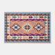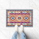 Colourful oriental mosaic kilim rug with a traditional geometric ornaments. Patterned carpet with a border frame.