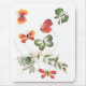 Mouse pad with Colourful butterflies in orange and green flutter over the top of mouse pad and around leafy vine. Originally in acrylic on paper by Deborah Miller, Visages.
