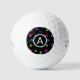Fore! Enjoy golfing while showing your love for animals with these monogrammed golf balls featuring a cute and colourful animal paw print pattern. Shown here with a black background; you can change the text, circle border and background colour to your favourite!