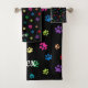 Colourful Painted Paw Prints on Black Bath Towel Set