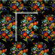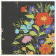 This black fabric features a large scale pattern of whimsically illustrated wild flower bouquets in retro brights like tomato red, sherbet orange, lime green, bright aqua and serene blue violet and is sure to bring a little sunshine to your sewing projects.