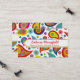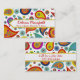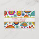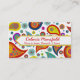 Colourful fun custom mommy networking card, with a wildly colourful paisley pattern, on a white background. A yellow edged white band text area has red text ready to personalize, with your information. Great way to keep in touch with other mothers for play dates, parties and baby sitting.