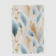 Cute pampas grass in shades of light blue and gold with golden glittering dots on a white background.