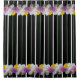 This delicate bouquet of pansies features soft pastel colours of yellow, purple, pink and white. The colourful arrangement is set on a background of black and white bold stripes with a thin, green accent stripe.