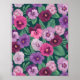 Colourful pansies on dark greenish blue poster
