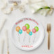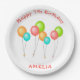 Cute Colourful Party Balloons Kid Birthday Paper Plates. Cute birthday party plates with four colourful balloons in red, green, blue and orange colours. Personalize the plates with your child`s name.