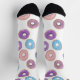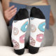 These cute doughnut socks feature colourful pastel doughnut illustrations with icing and sprinkles in pink, purple and blue colours. They're a cute stocking stuffer-type small gift, or a fun addition to an outfit. Use them as a party favour for doughnut themed parties.