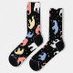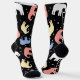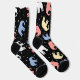 Red, yellow, blue and white pastel-coloured elephants on a pair of black socks. A clear sign that you're ready for a little change in your daily routine. To see some great grey. Even if they're not as colourful in real life, the majestic elephants are always a great sight. Hit the zoo. Or, if your budget allows, take a trip to see them in a different environment. Until then, show your favourite animal on your socks.