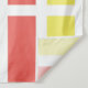 Geometric linear, rectangle, striped pattern of rainbow pastel hues of blue, orange, green, pink, purple, red and yellow.