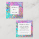 Colourful pastel rainbow unicorn gold mermaid scale iridescent square business card. Easily personalize this business card by adding your name, city and contact details. Click "customize further" to change the text colour and font style and size. This business card is perfect for a makeup artist, hairstylist, nail technician, or salon owner.
