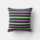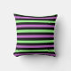 Modern stripe pattern throw pillow features colourful horizontal stripes in black, pastel green and purple colours.