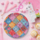 This pretty quilt patterned paper plate can be personalized with your monogram or other text for a special luncheon or party event that ladies of all ages will delight in. Created in a brightly colourful faux patchwork print. Choose from two sizes.