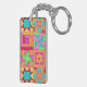 Colourful Patchwork Quilt Blocks Art Keychain