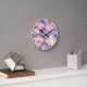 A beautiful patchwork quilt clock. Features a fabric scrap patchwork quilt in colourful pinks and yellows