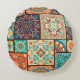 Colourful patchwork tile: Islamic motifs. Round Pillow