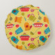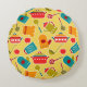 Colourful pattern of kitchen utensils round pillow