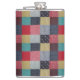 This colourful vintage look patchwork image on this shabby flask has a very traditional appearance, the fabric patchwork picture on the candle is taken from a photograph of an original hand sewn patchwork blanket I made. The traditional patchwork has been photographed to show it looking natural and with a "pre-loved," or even shabby chic appearance, you may even see a few pet hairs! and there will be uneven bits and stray threads and creases, this all makes up the natural look of a much loved traditional patchwork fabric. The realist look of the image on this original and unique hip flask gives it a quirky vintage appearance.