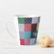 This fun and colourful patchwork mug has a very traditional appearance, the fabric patchwork image on the unusual mug is taken from a photograph of an original patchwork design. The colourful handmade patchwork fabric has been photographed to show it looking natural and "pre-loved" you may even see a few pet hairs! and there will be loose threads and creases, this all makes up the natural look of a much loved traditional piece of patchwork fabric. The natural look of the image on this mug gives it a quirky and traditional look. This is a customizable mug, you can personalize it with your own text.