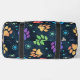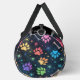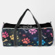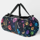 This colourful pattern duffel bag features vibrant paw prints and bones scattered across a dark, space motif background with tiny stars. It's a stylish and functional pet-themed travel accessory, perfect for any pet lover.