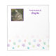 Personalize this cute and colourful paw print patterned notepad with your own text and photo, you can also change the purple frame and text colour to your favourite.