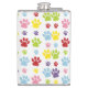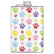 Colourful Paws, Paw Pattern, Dog Paws, Paw Prints Hip Flask