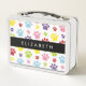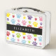 Colourful Paws, Paw Pattern, Dog Paws, Your Name Metal Lunch Box