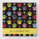 Colourful Paws, Paw Pattern, Dog Paws, Your Name Square Wall Clock