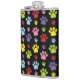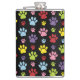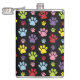 Colourful Paws, Paw Pattern, Paw Prints, Dog Paws Hip Flask