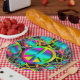 Great accent for an outdoor summer party. Bright colors, vibrant floral design