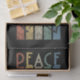 Retro style colourful peace text design with lines and dove of peace decoration on grunge background. You can add your name/monogram to personalize the item.