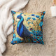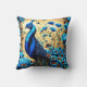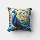 Colourful Peacock Among Vibrant Blue Flowers Throw Pillow