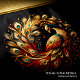 A vibrant peacock displaying its colourful plumage in a circular formation on a clean white background.