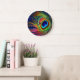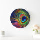 Colourful Peacock Feather Print Large Clock