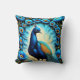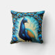 Colourful Peacock Surrounded by Blue Flowers Throw Pillow