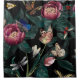 Colourful Pattern with big flowers-peony with branch and big leaves and insects-buterfly, dragonfly, ladybug, bee on black background