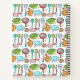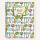 Colourful kitchen utensils doodle pattern and recipe card label graphic you can personalise with a name and text. Great notebook to keep track of your favourite homemade recipes.
