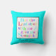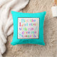 Colourful aqua throw pillow with Scripture verse from 2 Timothy 4:17 (But the Lord stood with me and gave me strength). Personalize with your name, if desired.