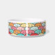 This is a heavy, durable bowl decorated with Tibbies of many colors, the perfect size for hungry/thirsty Tibs. The design is interesting and printing clear.