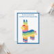 These party invites are perfect for your fiesta. They feature a colourful illustration of a classic striped pinata in pink, yellow, green, blue, orange and red. With this simple illustration and your own custom text in blue your birthday party is sure to be a smash.