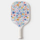 Have fun on the court playing with this pickleball paddle featuring a pink, blue, orange and white floral pattern. Add your custom text to personalize the paddle - name, monogram, location, company or club name, phone number, etc. The perfect pickleball gift for parents, kids, families, grandparents, pickleball partners and more. Beginners and experienced players will love playing with this one of a kind pickleball paddle designed by PickleballGals.