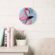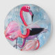 Colourful pink flamingo watercolor art large clock