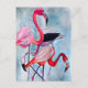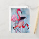 Colourful pink flamingo watercolor art postcard