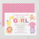 Colourful Pink Jungle Animals Girl Shower Invitation