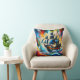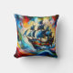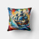 Colourful Pirate Ship in Abstract Waves Throw Pillow